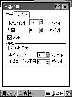 ボールド表示に加え、アンチエイリアス表示が可能になりました。拡大表示が美しいトゥルータイプフォントは、小さい画素数の携帯電脳ではむしろ見にくい表示になってしまうことがほとんどです。ボールドとアンチエイリアス表示を組み合わせることにより、このWindowsCEマシンの根本的な欠陥を是正することができます。(2001/4/30)