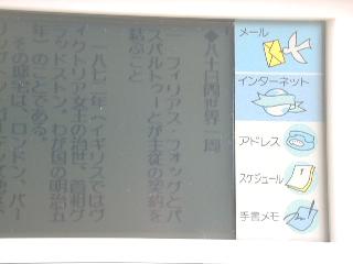 「パーソナルネットワークプレーヤー」という触れ込みで、テキスト(小説やウェブ、メール、電話帳)や画像を持ち歩けるというので、早速購入しました。