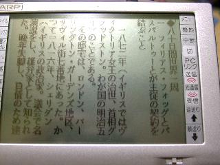 「PsPCなら、コンパクトでCFスロットを備えており、本来もっとも電子書籍リーダーとして期待される所です。現行機種は視認性が低いか電池の保ちが悪いかの理由ですすめにくいのが残念です。Palmシリーズと比較してどうしても見劣りしてしまいます。」と書いていたのですけれど、ソフトひとつでマシンがこんなに魅力的になることを思い知らされました。