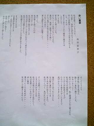 阪神電車の中で電話着信、まむしゅうさんからです。「電車の中なので・・・」とろくに話ができませんでした。静内で岡田史子の遺作原画展があることをまむしゅうさんに教えてもらい、今日は静内に行くことにしています。まむしゅうさんは平取町特産のトマトの収穫で大変な時期のはずですけれど、夕方静内まで駆けつけてくれるようです。