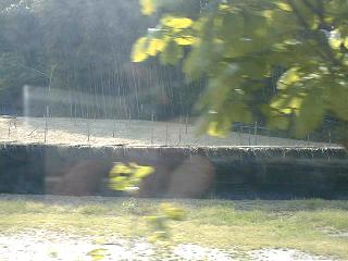 バスは途中、茶畑の前をいくつも通る。たいてい畑全体が莚ですっぽり覆われている。茶摘みの季節だ。