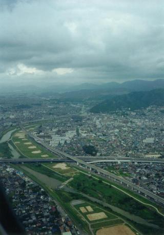 気付くと離陸、西宮スタジアムや甲子園球場がはるか下に小さく見えては過ぎていきます。速いなあ。