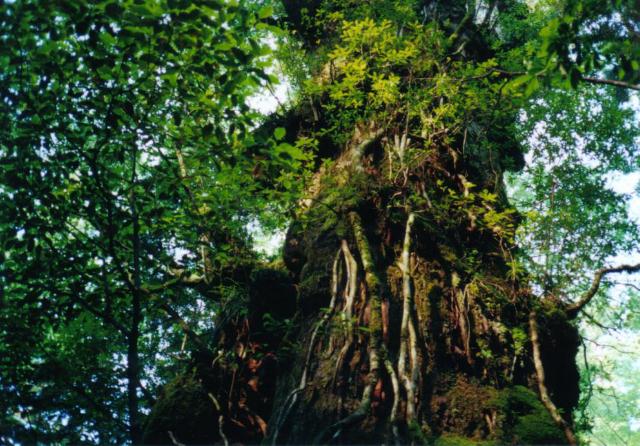 まさにイメージしていた「屋久杉」通りの巨大で、様々な植物の衣をまとった貫禄のある姿に、感激してしまいます。