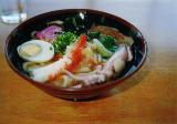 空港に着いて、チケットレスを申し出て名前を名乗りVISAカードを渡すと、航空券を出して搭乗手続きをしてもらえました。職場へのおみやげを買い、そう言えば昼食がまだだと気付き、うどんとジュースの食券を買って食堂に入ります。