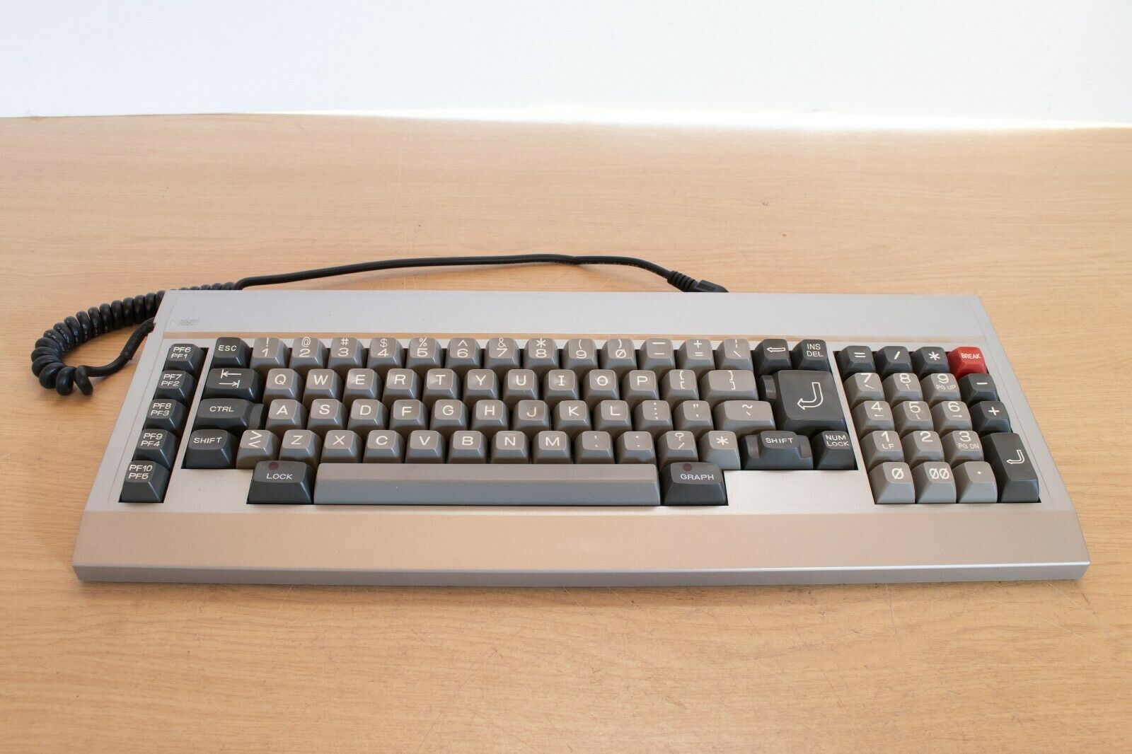 The MBC-55x computers used a proprietary keyboard interface, so a standard PC/XT keyboard will not work. The keyboard was manufactured by Fujitsu and uses leaf springs under the key cap for a solid, full-stroke clicky feel. It comprises 81 keys including 5 programmable function keys (holding SHIFT provides F6-F10)