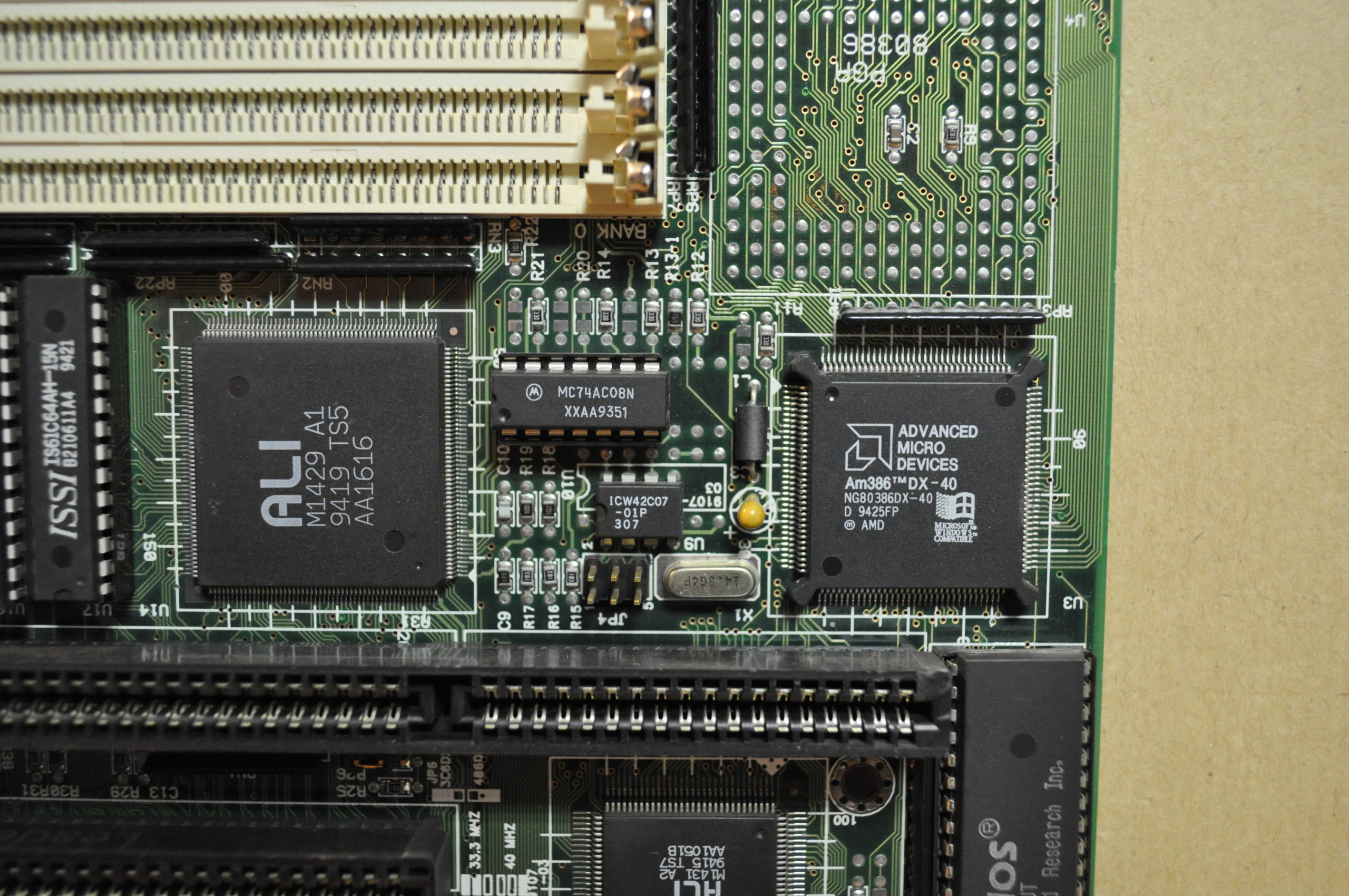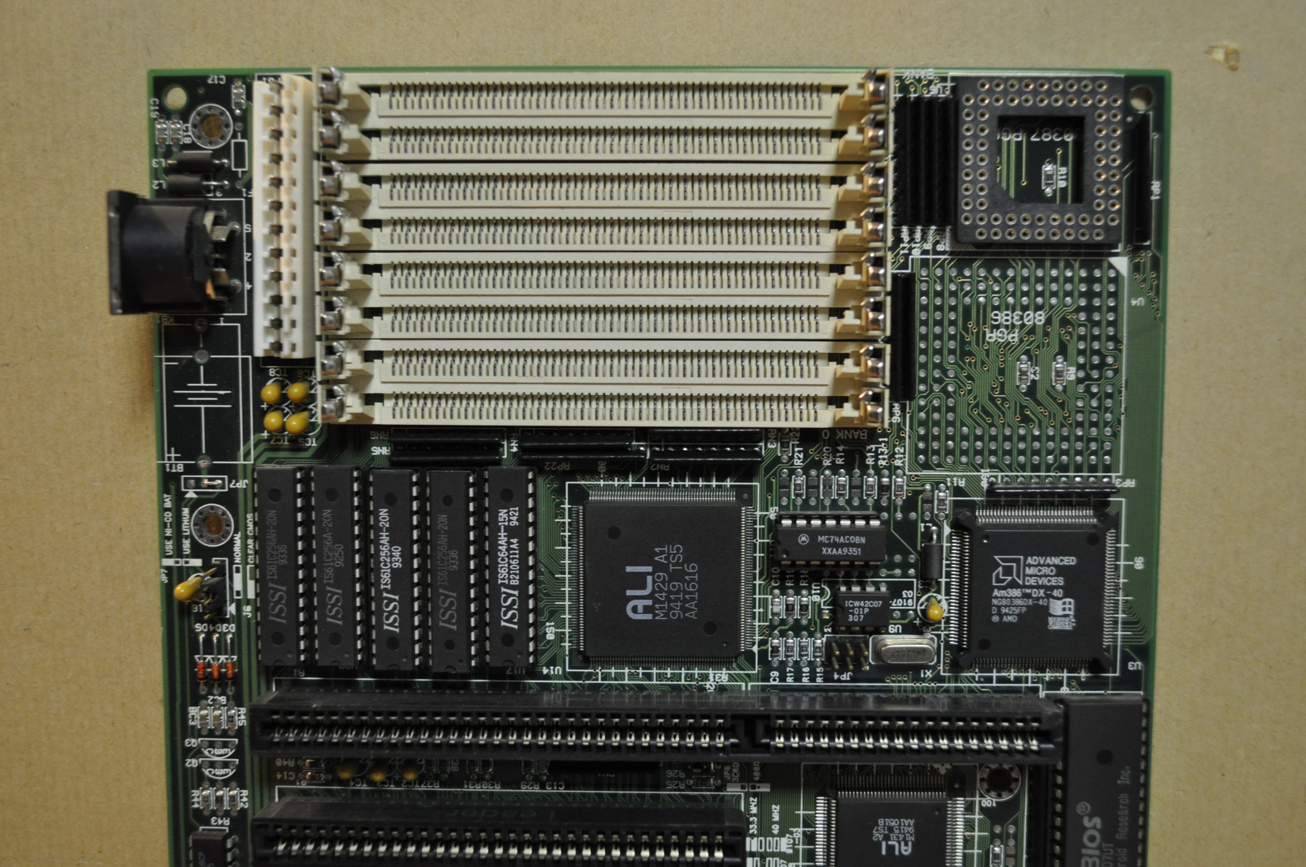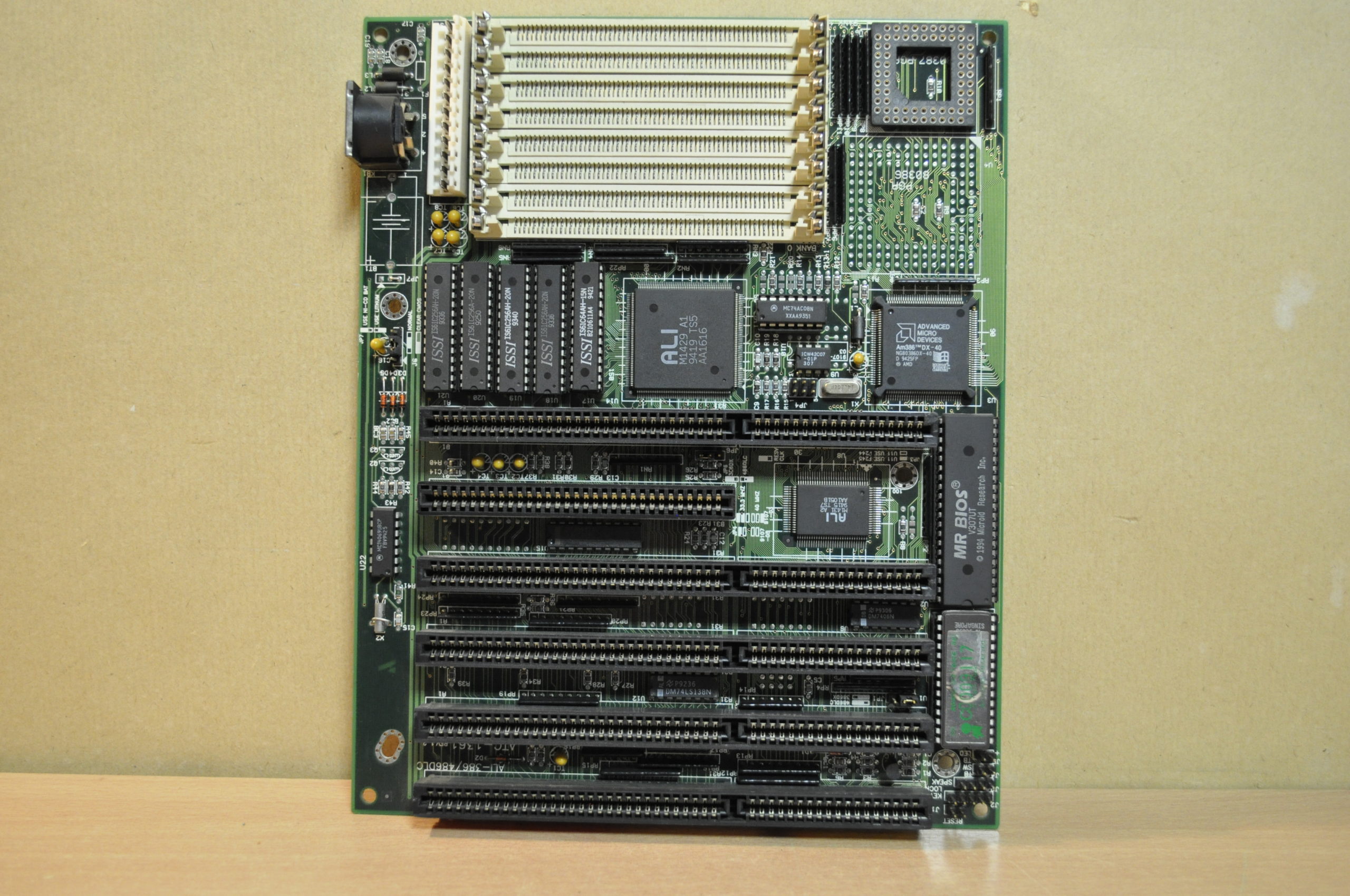 Based around the popular ALi M1429/M1431 chipset, the board has an embedded AMD Am386DX-40 CPU which is the fastest native 386 CPU ever made. Variants can be seen with or without a PGA socket (missing on the version seen in the main image here).