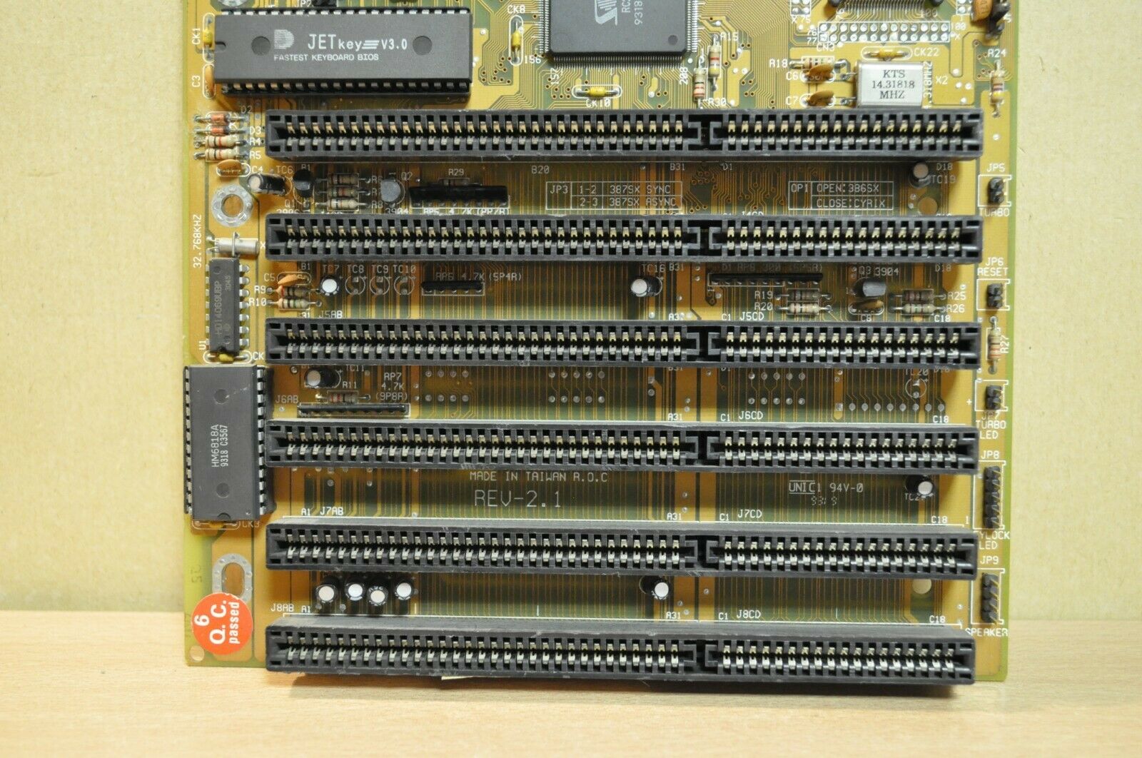 This board has a UMC chipset consisting of the UM82C481BF and UM82C482AF controller chips. It supports faster 386DX CPUs including the Cyrix 486DLC-40 and AMD Am386DX-40.