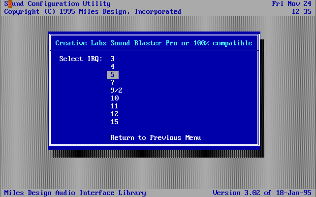 Since Destruction Derby makes use of the Miles Audio Interface for its sound driver implementation, other settings can be found in the file AILDRVR.LST in the game's directory.