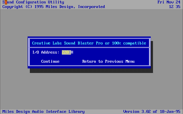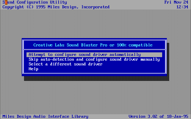 If the sound card setup doesn't automatically start, run SETSOUND.EXE from the game directory: