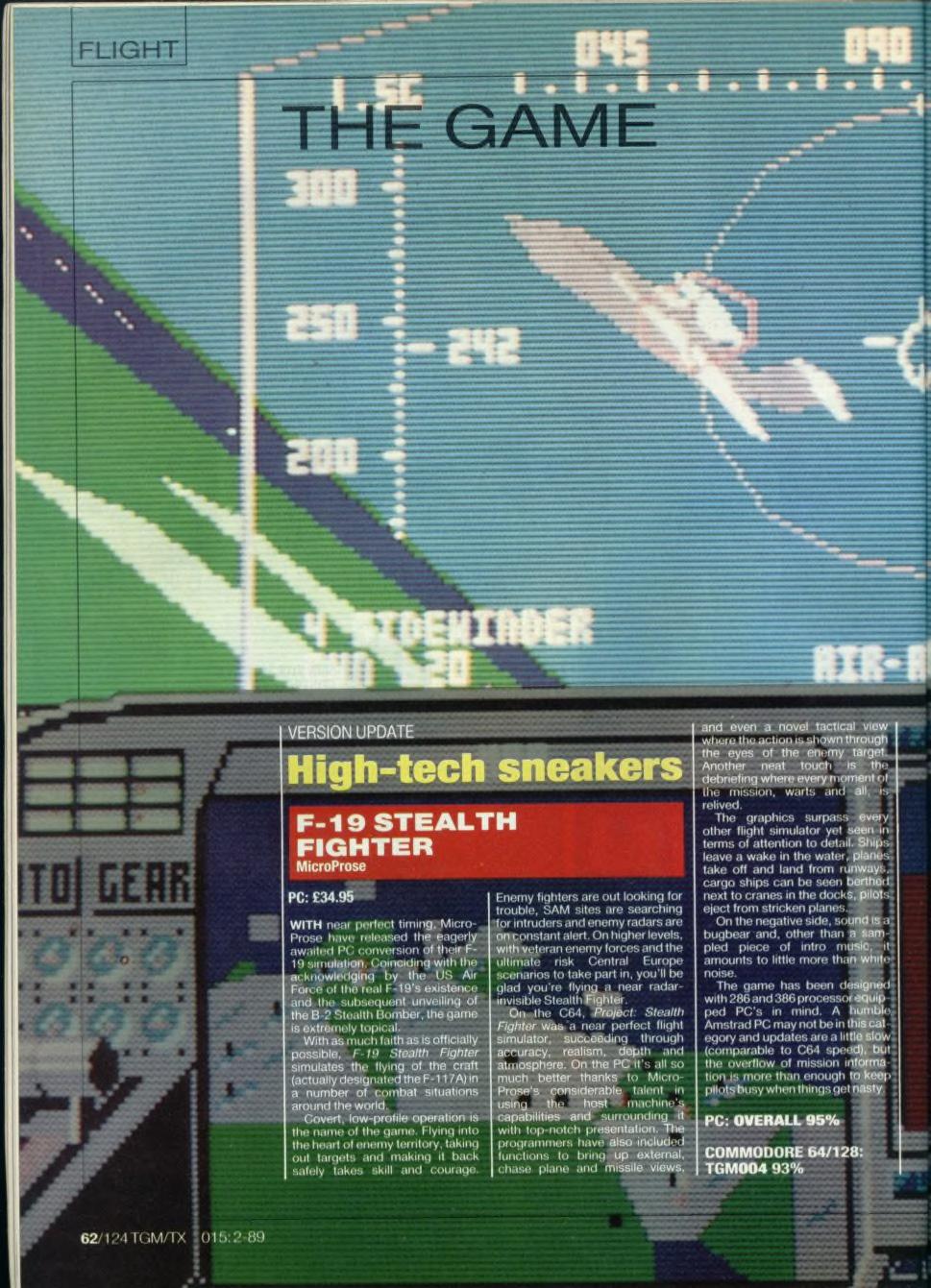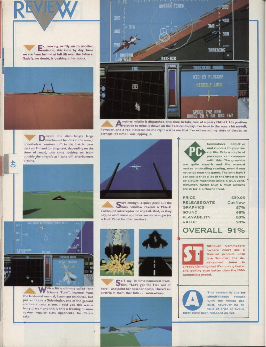 Some other quality flight sims that came out around the same time as F-19 were Battlehawks 1942 (Lucasfilm Games) and LHX Attack Chopper (Electronic Arts), not to mention MicroProse's own F-15 Strike Eagle II.