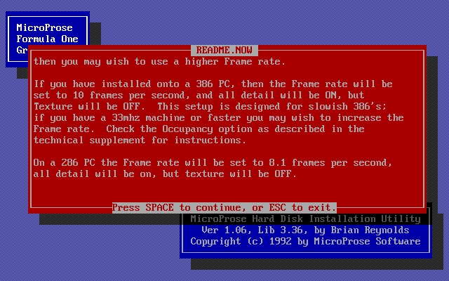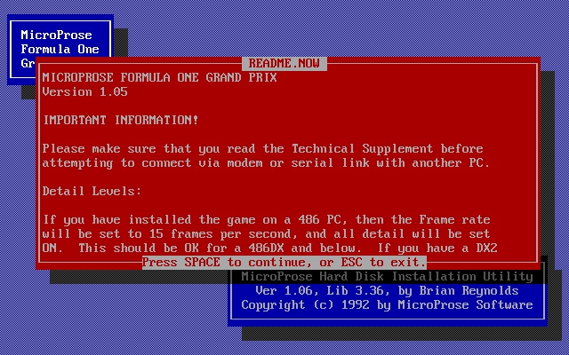 To run the game after installation is complete, go to the game's subdirectory and type F1GP <Enter>.