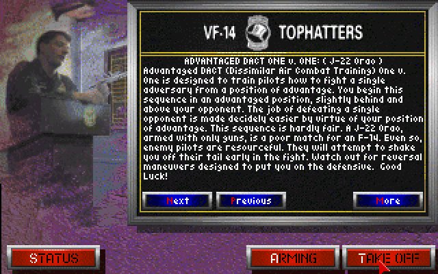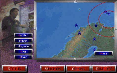 For the first time in a MicroProse sim, the graphics made use of textures on the aircraft, ground objects, and water. It was also the first MicroProse title to feature digitised speech, with your RIO (Radar Intercept Officer, aka the Rear Seat), wingman, the carrier, AWACS and Haweyes all communicating with you verbally.