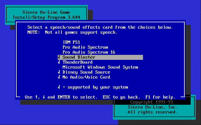 Cause: You are most likely running the game on a PC that is not "period correct", i.e. it's too fast for the game. This problem occurs with most Sierra games - the sound card initialization routine waits for the period of time to get a response from the card - on faster computers, this happens too fast and the game doesn't detect it in time.
