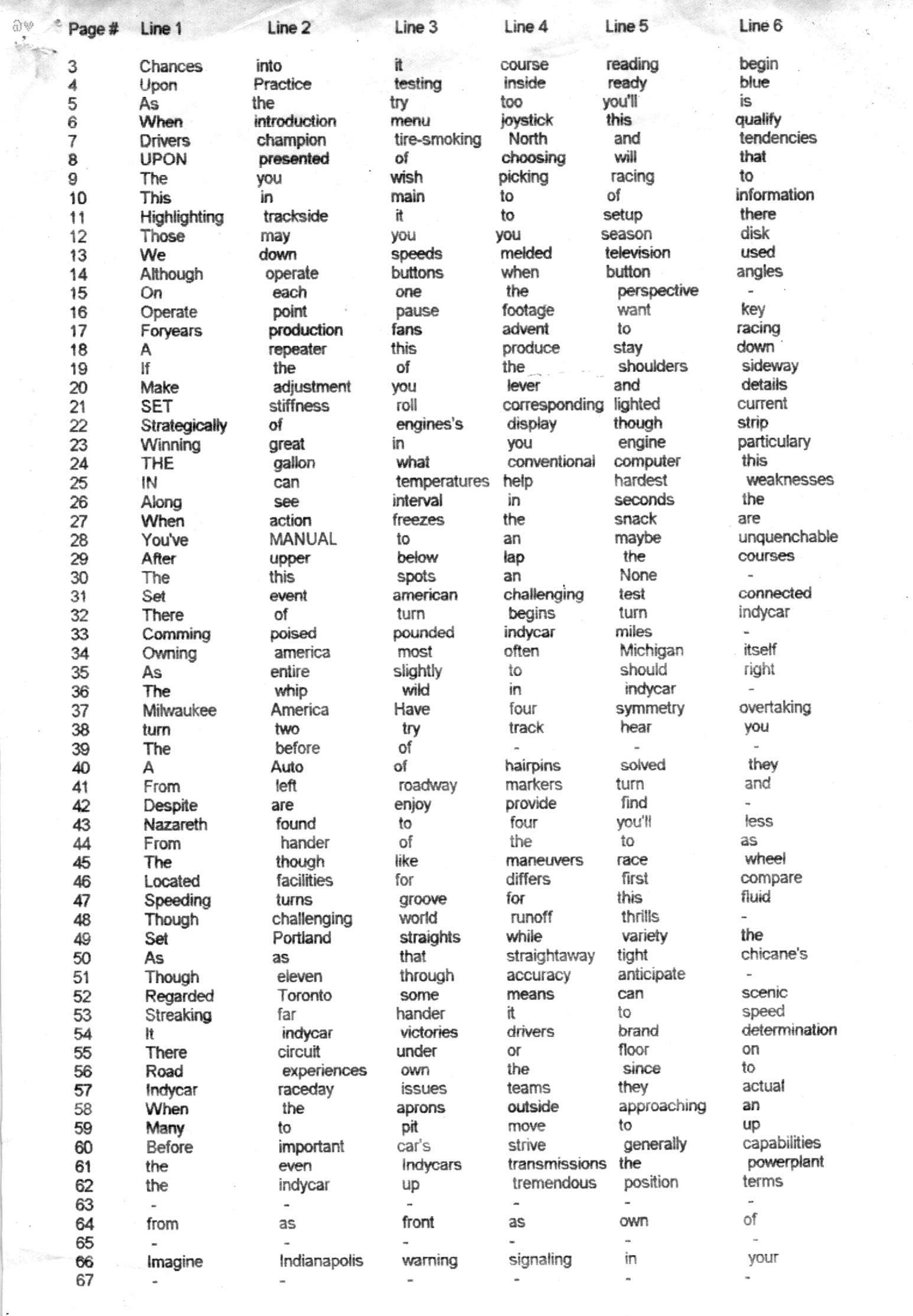 These two images contain all the words that are referred to in the copy protection: