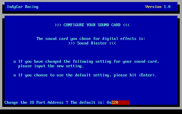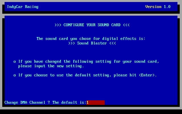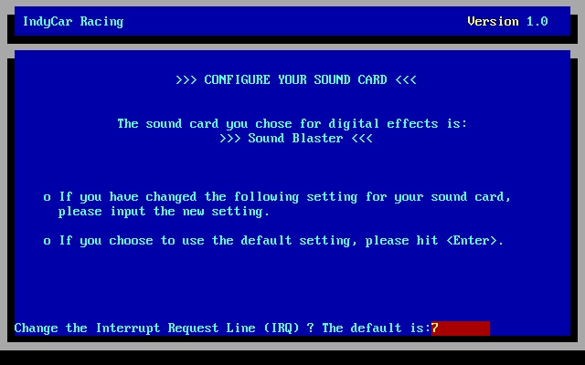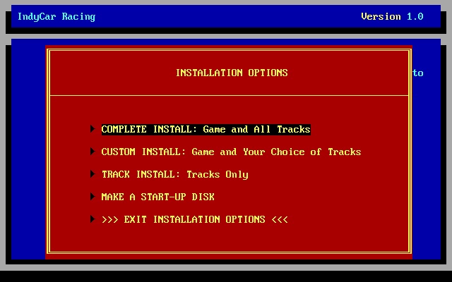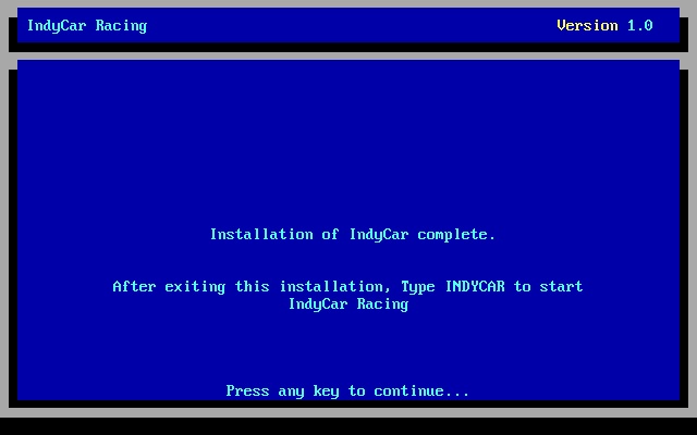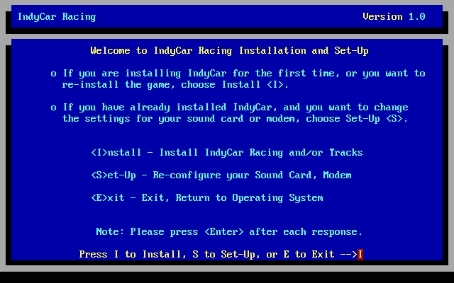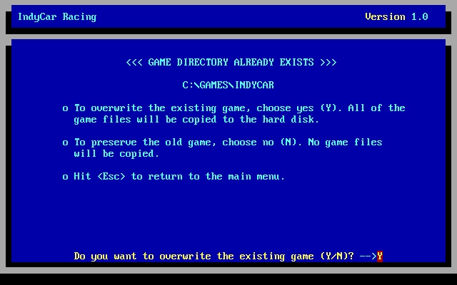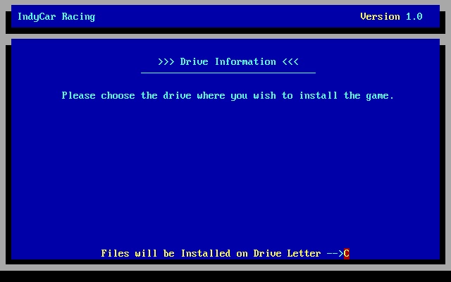 5. Enter the directory to install to (e.g. \games\indycar), press <Enter>.