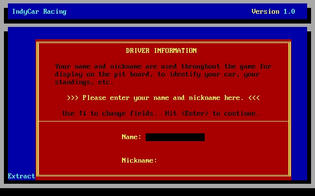 If you bought the track expansion pack it apparently came with a revised INDYCAR.EXE file, whereby you can simply bypass the copy protection by hitting <Enter>. This works for some versions and not for others.