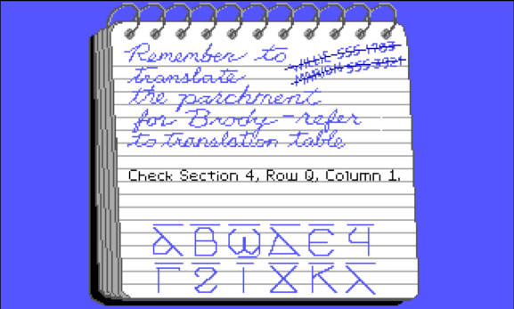 Indiana Jones and the Last Crusade: The Graphic Adventure uses manual copy protection. After the intro sequence, Brody asks you to translate a parchment: