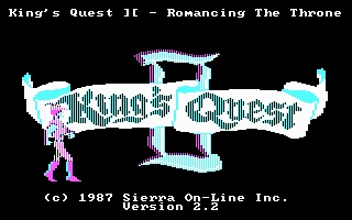 Al Lowe composed the soundtrack for King's Quest II. In addition to the new songs, it uses some of the same songs from the first game, including the Title, Danger, and Dead tunes, as well as several sound effects. KQ2 has over twice the number of songs as KQ1.