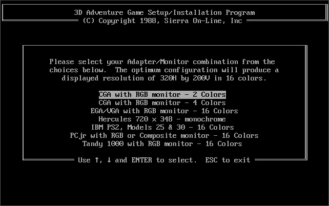 The game doesn't require any extended memory (XMS) or expanded memory (EMS) drivers to be loaded. To install the game or configure the graphics and audio settings, run INSTALL.EXE: