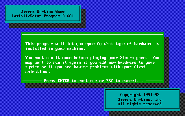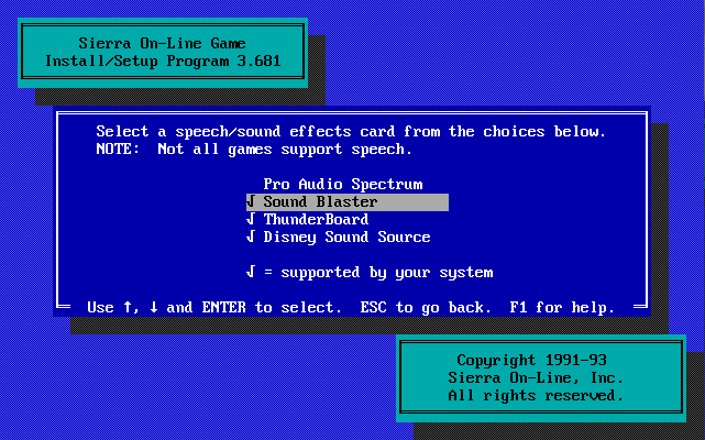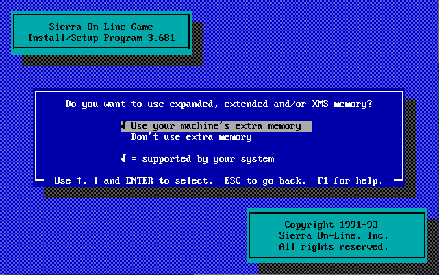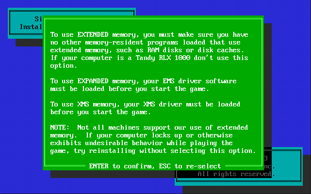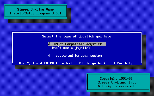 To configure the game for your hardware, run the provided INSTALL.EXE utility. You have the following options: