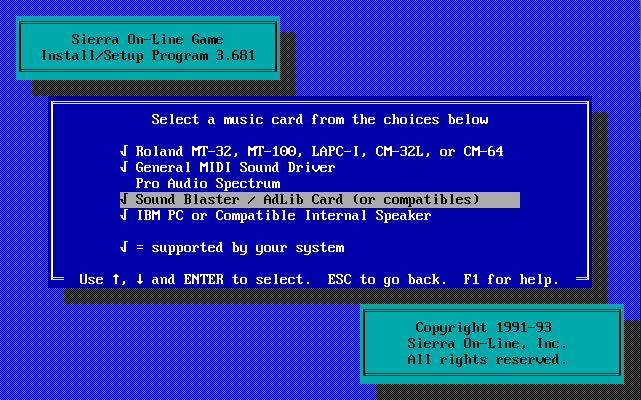 Cause: When SQ4 was released users simply did not have more than one sound card in their computer. As such, this game only supports a single sound card being driven at any one time. This means that if you choose Roland MT-32 as the audio option you get the glorious music but no digitized sound effects in the game.