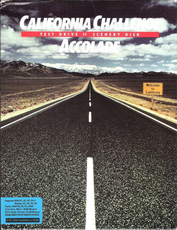 The game was designed with expansion in mind. Apparently borrowing an idea from its golf games, Accolade/Distinctive added the option for both new scenery and cars. Launched at the same time as the main game, Test Drive II Scenery Disk: California Challenge provided you with a route from the Redwoods of Eureka down to the border of Mexico.