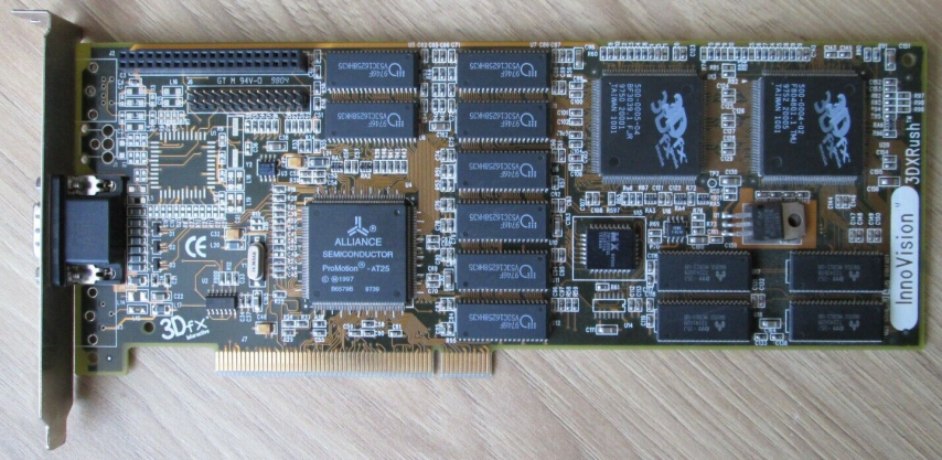 3Dfx was a graphics card manufacturer for the IBM PC and its compatibles from 1994 until 2002. Initially they manufactured only the 3D accelator chips which they sold to graphics card companies. Towards the end of 1996 the cost of EDO RAM dropped significantly, enabling 3Dfx to enter the consumer PC market with a full product.