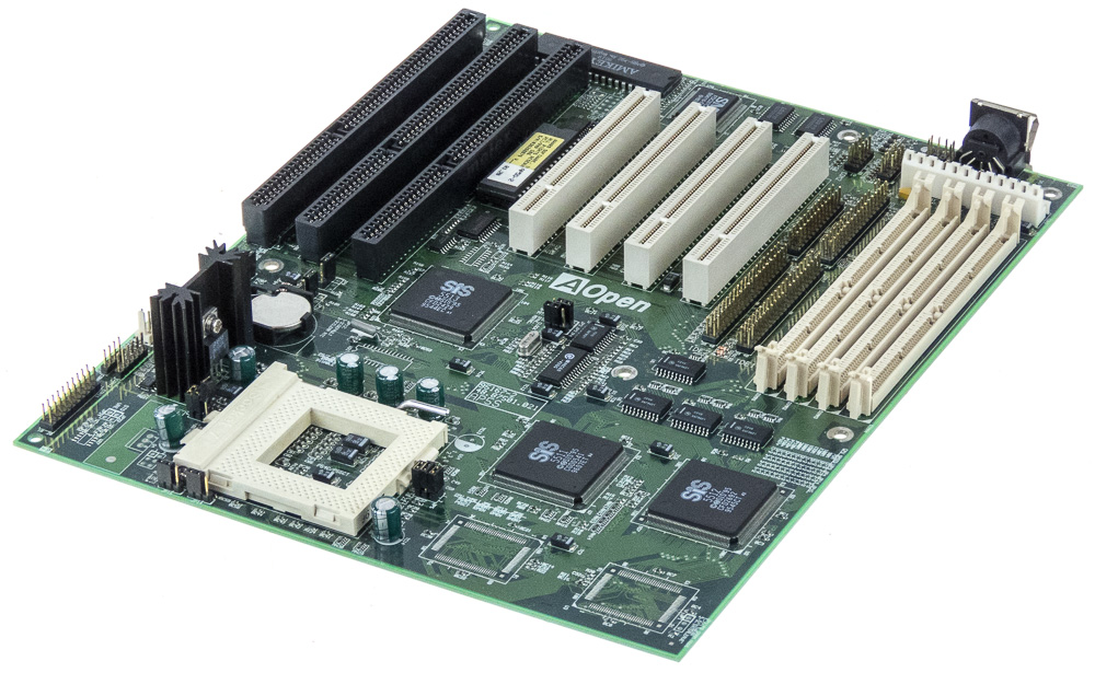Memory: 2 x 72-pin SIMM (FPM or EDO), 3 x 168-pin DIMM (PC-66 or PC-100 SDRAM)