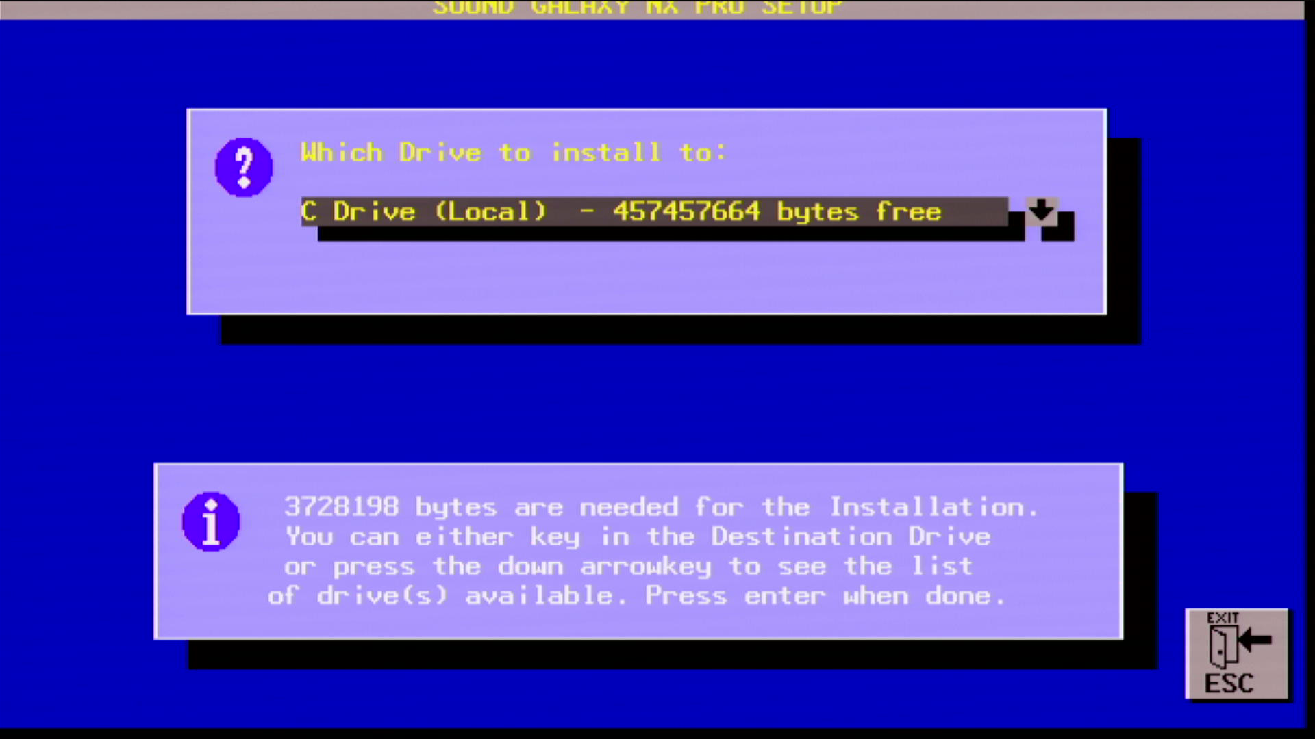 The original version 1.10 disks install below can be used to install and configure the card for DOS use. Here are some screenshots of the INSTALL.EXE utility running: