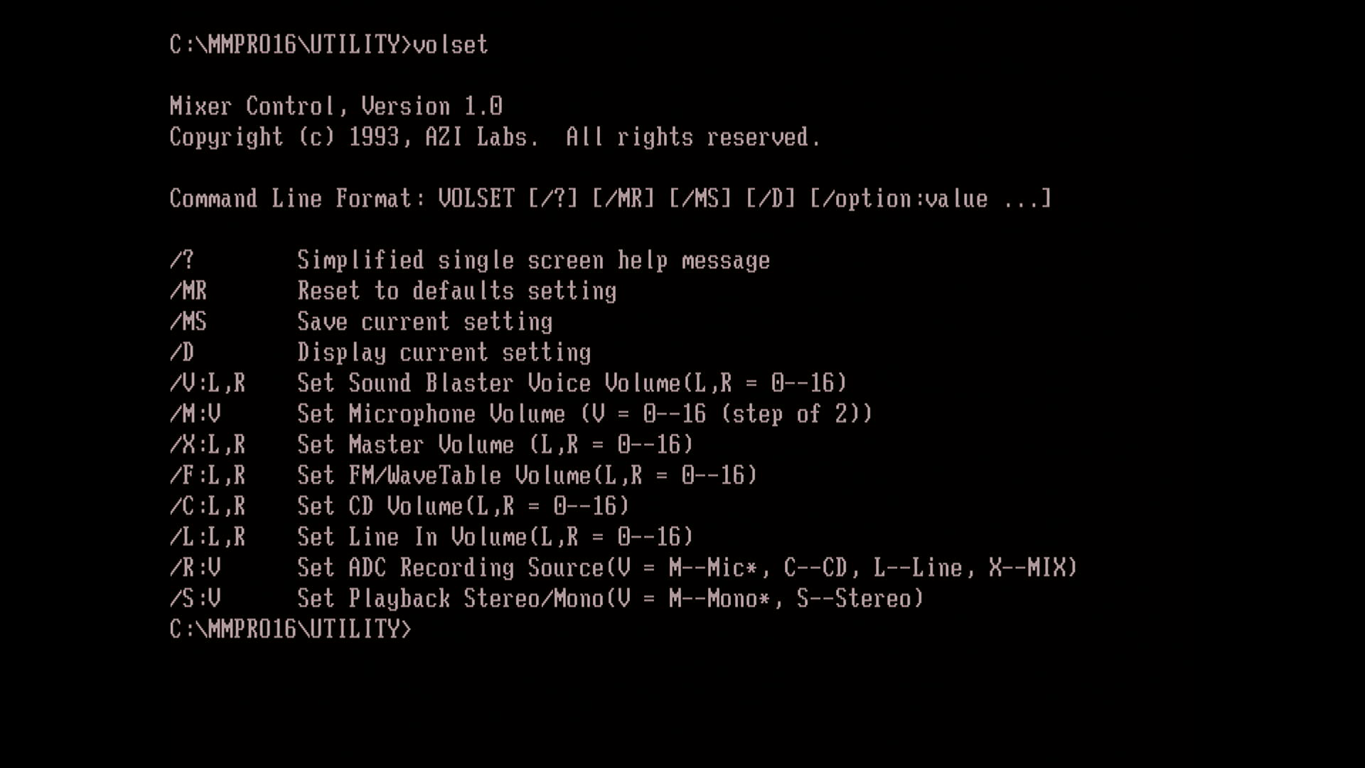 • VOLSET.EXE - Used to adjust the volume and balance on each channel