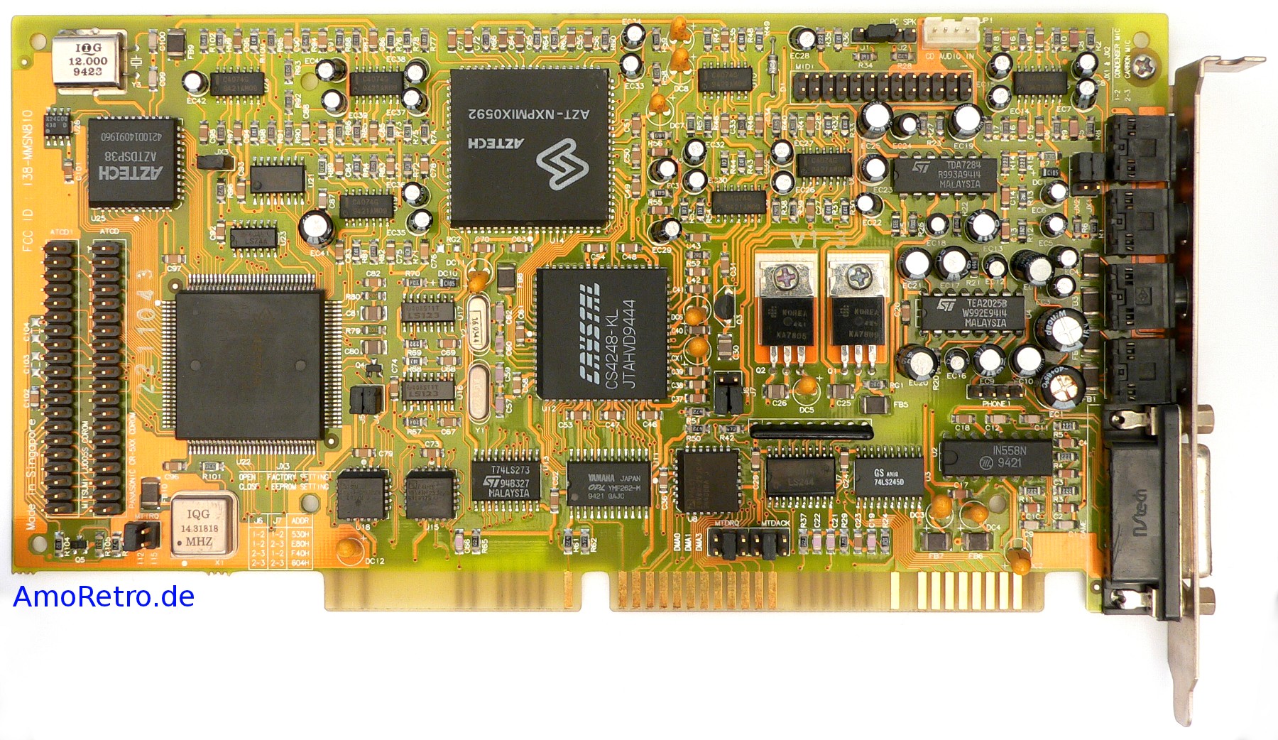 This is one of the last cards produced by Aztech that is *not* PnP. It has no wavetable header since it has embedded wavetable support in the form of the Aztech AZ3320, which is a rebranded SEC (Samsung) 0164 and a 1 MB ROM that holds the samples.