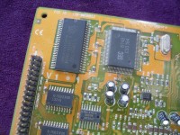 Some NX Pro cards (like the one shown above) have a Mitsumi and Panasonic CD-ROM header, compatible with the Mitsumi LU005S or Panasonic CR-521 and CR-522 CD-ROM drives. Others have a SCSI and AT (IDE) CD-ROM header - this was called "NX Pro Extra". Aztech provided an optional 'Future Domain SCSI Upgrade Kit' which included a Future Domain SCSI controller chip and device driver software. The large socket in the top-left corner of these cards is for this SCSI controller chip (see first image below).