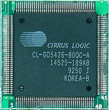 The CL-GD5426 was the first Cirrus Logic chipset that got a 32-bit hardware BitBLT (bit block transfer) engine and also the first to support up to 2 MB of video memory. 15-pin D-SUB only.