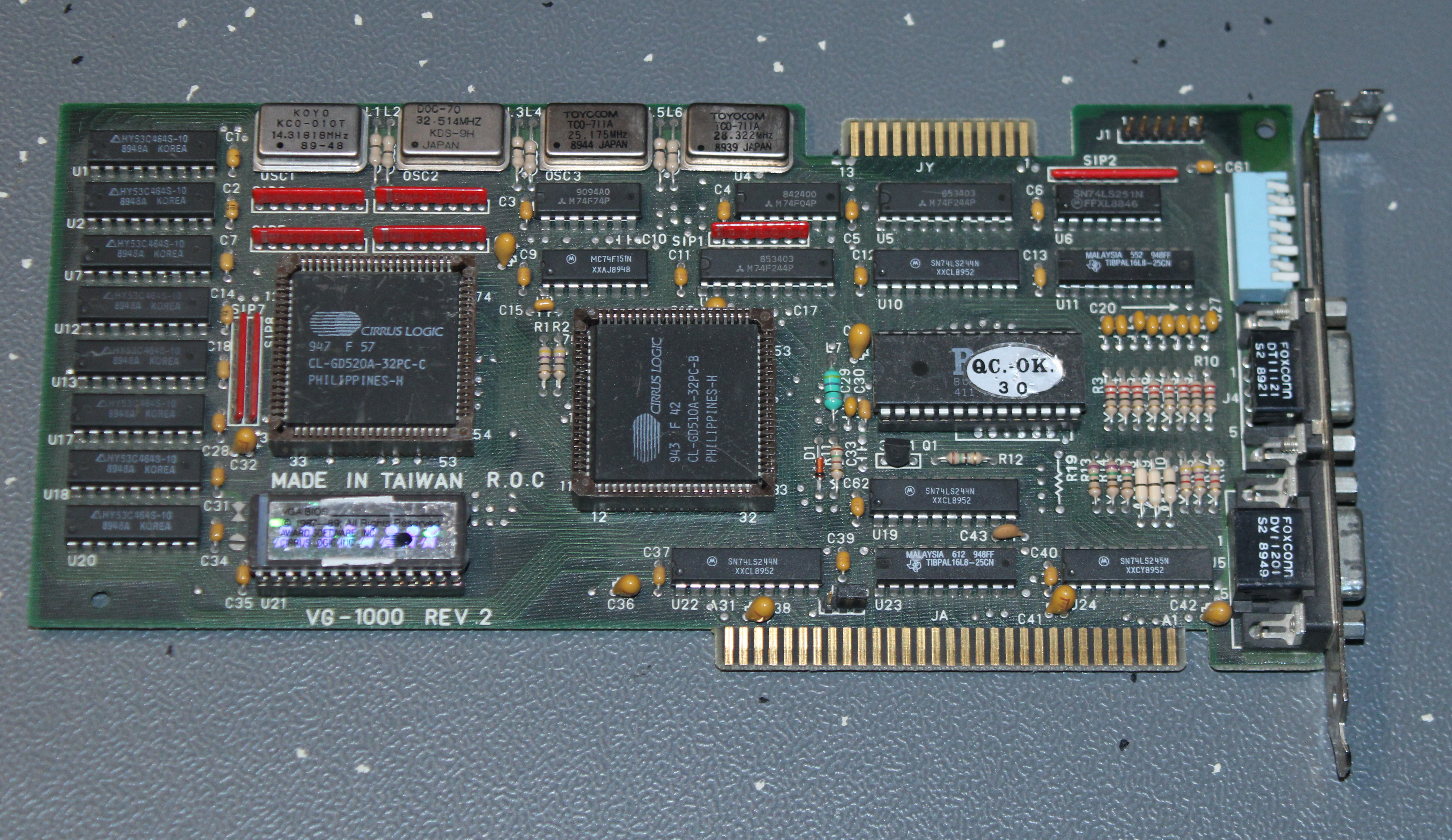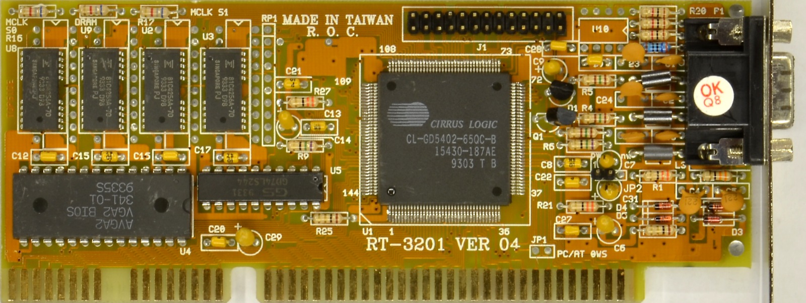 The CL-GD5320 was an ISA Super VGA chipset. These cards, since they were SVGA only, came with just the 15-pin D-SUB. The core clock ran at 40 MHz.