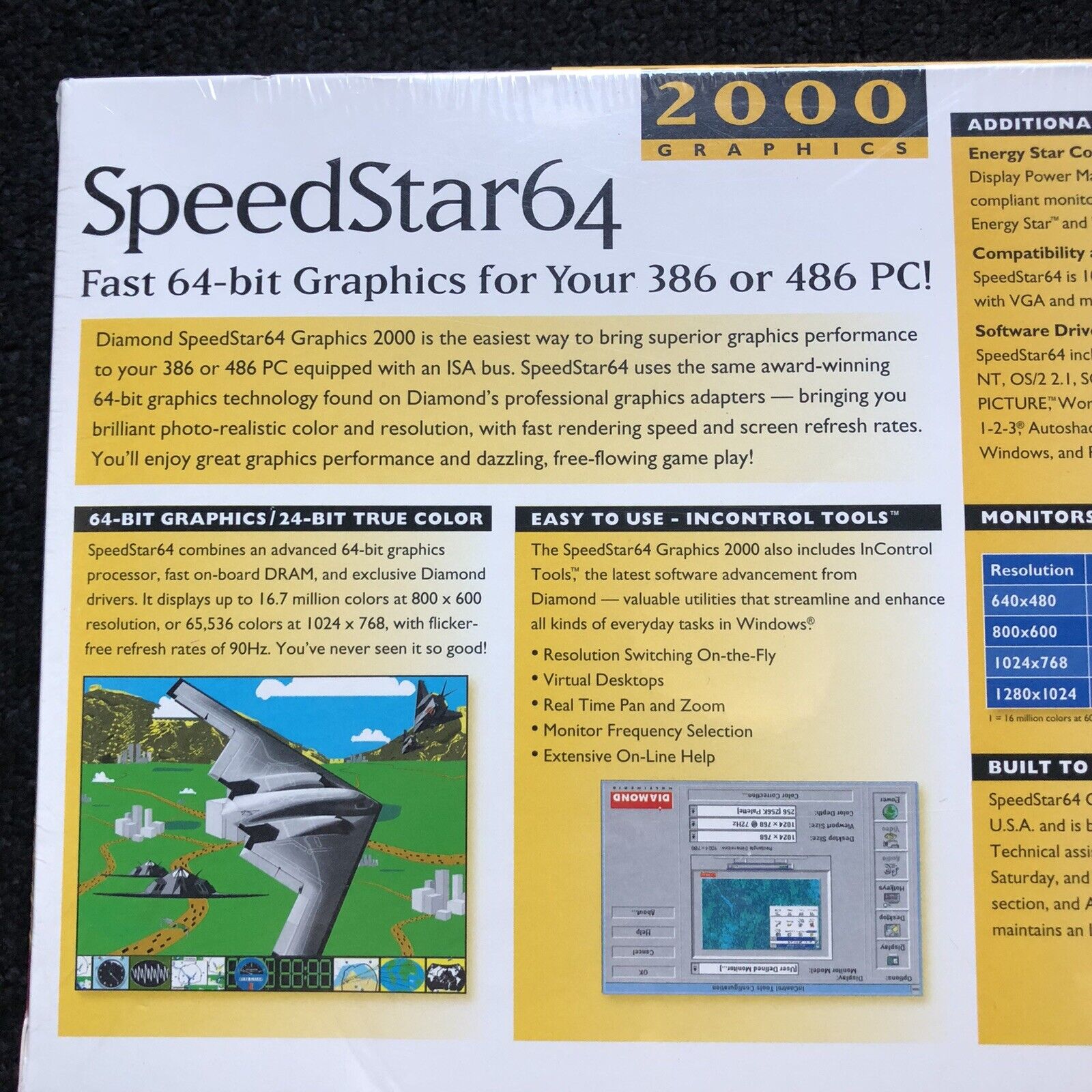 The SpeedStar 64 was a Windows accelerator card. Internal memory access only runs at 32-bit if you have just 1 MB installed. The card runs at 64-bit if you install an extra 1 MB of video memory.