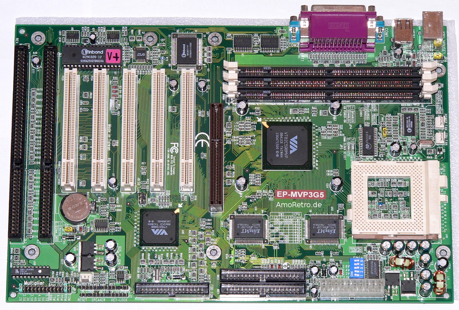 MVP3G-MYear: 1999 This board was a real hit amongst Super 7 users, partly due to the 5/2/1 expansion slot configuration. |