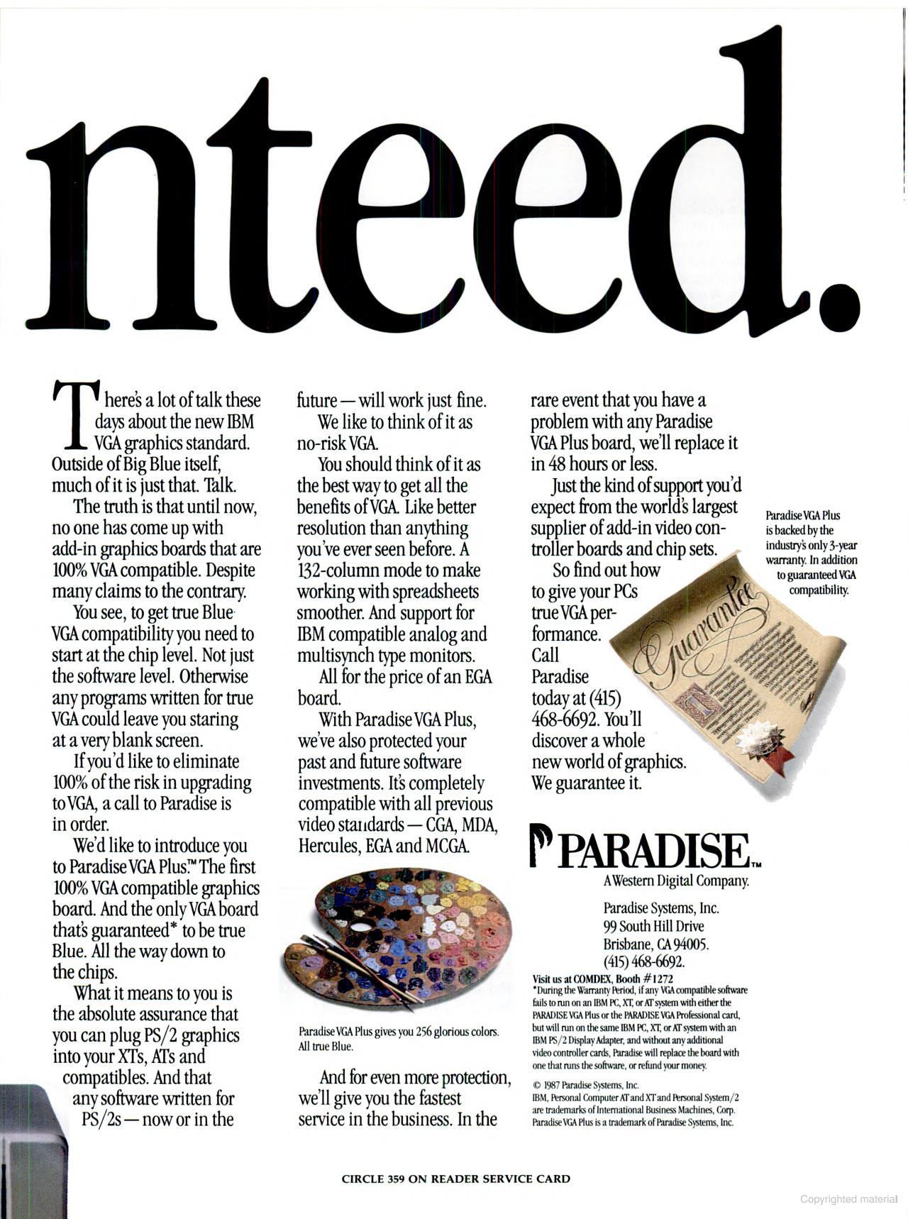 For beyond-VGA graphics, the Paradise VGA 1024 falls short. You can do better for less." PC World, August 1991