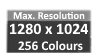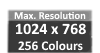 - On 256 KB video RAM boards, resolutions up to 1024 x 768 in 2/4 colours, or 800 x 600 in 16 colours