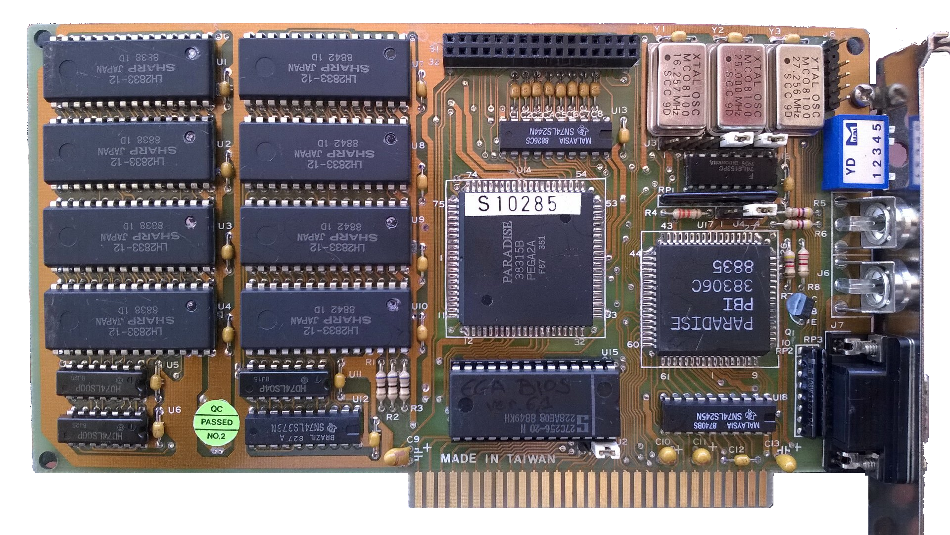 For my findings on the crystal oscillators on PVGA1B/WD90C00 cards, see the section at the bottom of this page called Paradise/WD Crystals.
