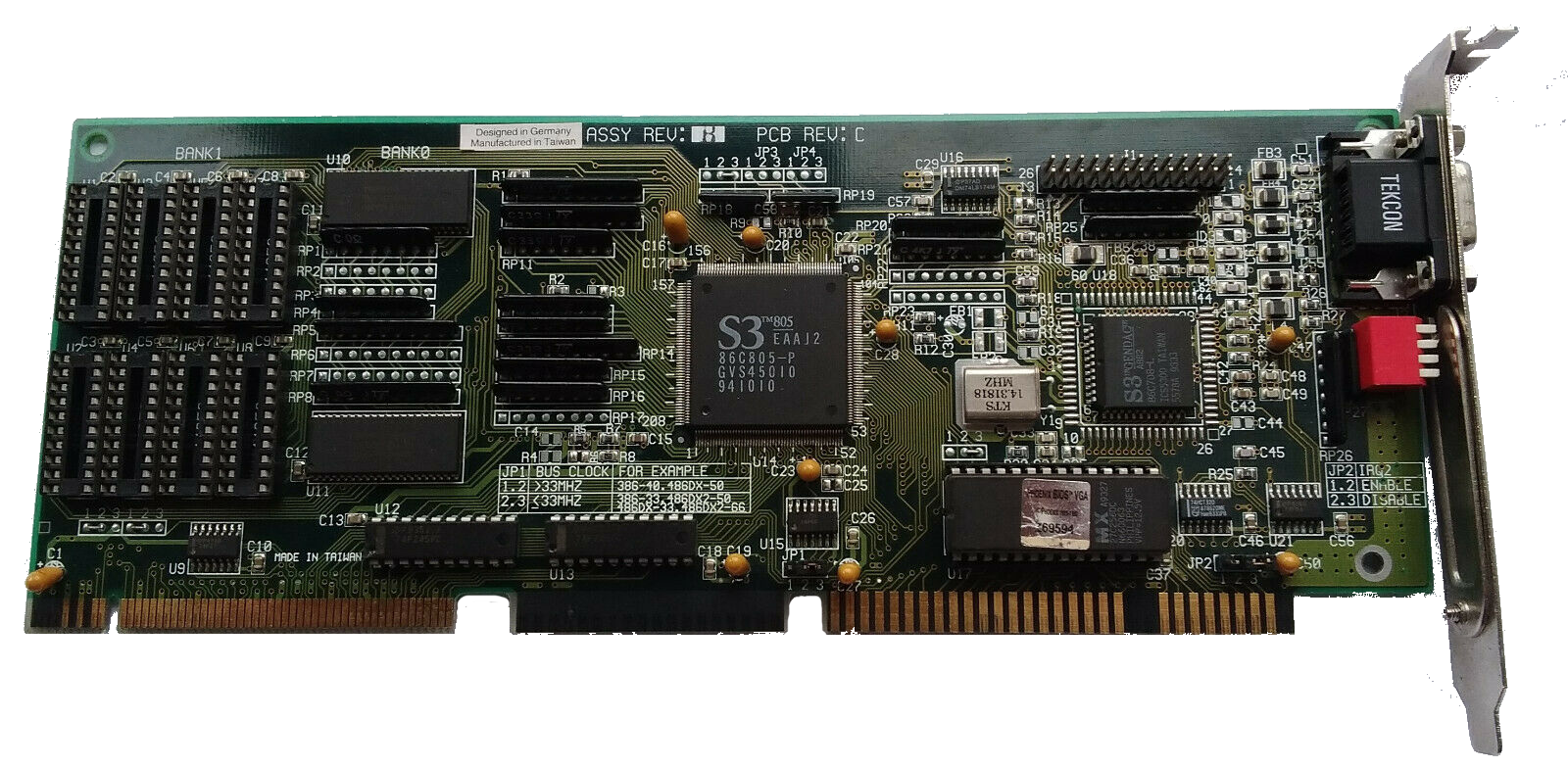 The 86C801C was a great-performing SVGA chipset on the ISA bus. It had a 32-bit internal architecture and supported a 32-bit path to display memory, as well as full support for True Color (16.7 million colours). It supposedly provides twice the VGA performance of the 86C924 in DOS (likely because the 86C924 only had a 16-bit data path to its memory).