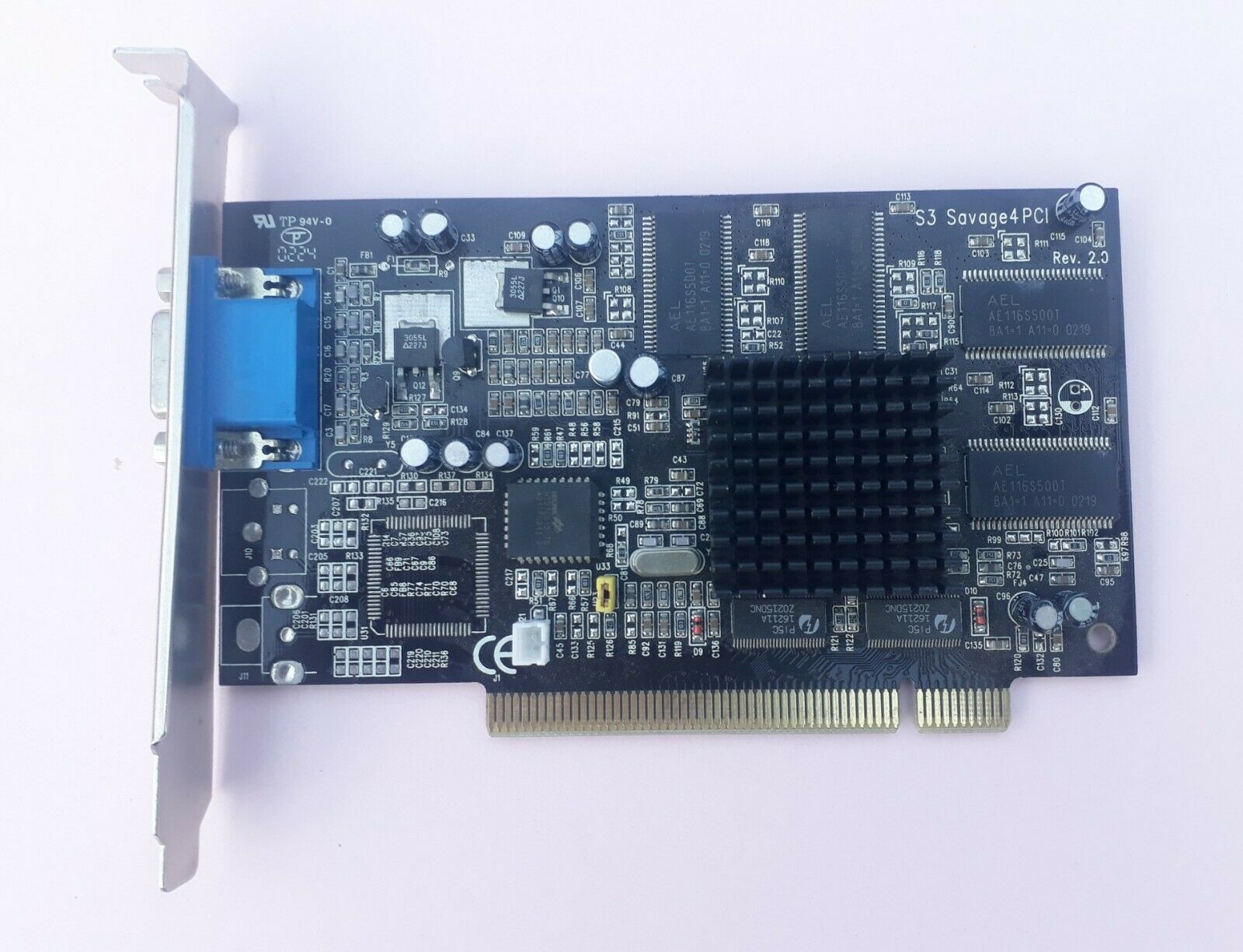 The Savage4 can be thought of as a bug-fixed Savage3D - good specs on paper, but turned out to be a commercial failure. Drivers were awful, but they did support OpenGL and Direct 3D.