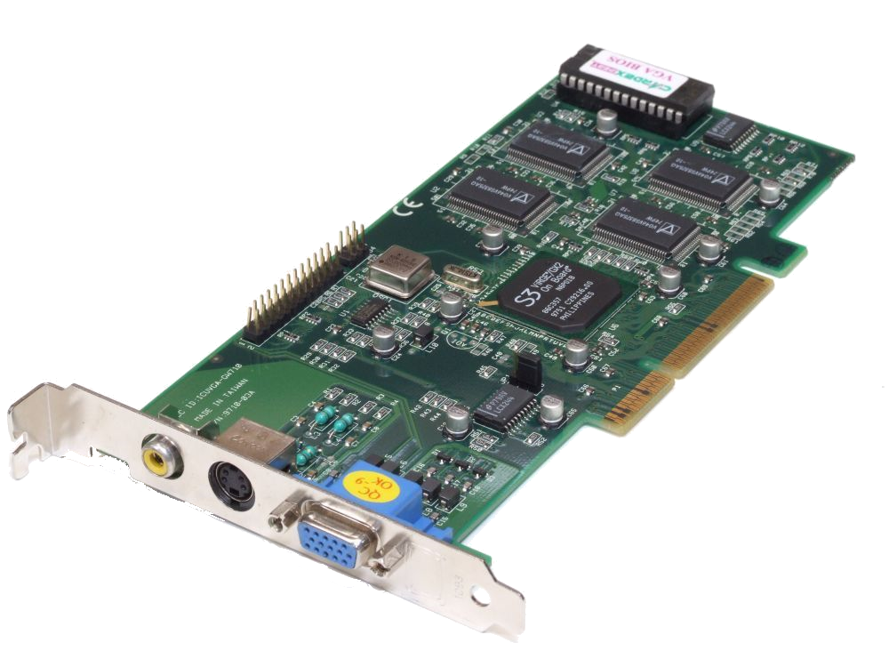 The Trio3D/2X came out a year later in 1999, again with 4 MB or 8 MB RAM options, though it supported the faster SDRAM. The 2D acceleration was improved again from the Trio3D, and S3 managed to eek out better 3D performance, though it sits somewhere between the budget ViRGE/MX and its bigger brother the GX/2 of 2 years prior. Texturing in system memory is supported (and is 24-bit depth), leveraging AGP 2x's higher transfer rates. S3 also managed to rehash their drivers with Trio3D/2X with good compatibility.