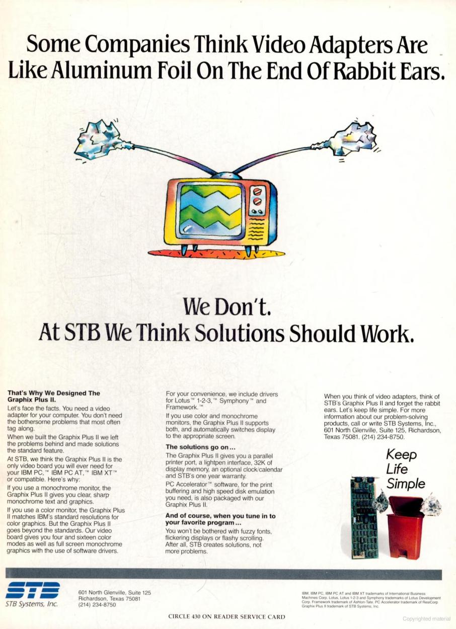 "STB's 1280 Graphics System is a very capable performer, featuring easy installation, flicker-free operation, and good color support at a reasonable cost. Its moderate $426 street price makes it a worthwhile competitor to many of the S3 boards.