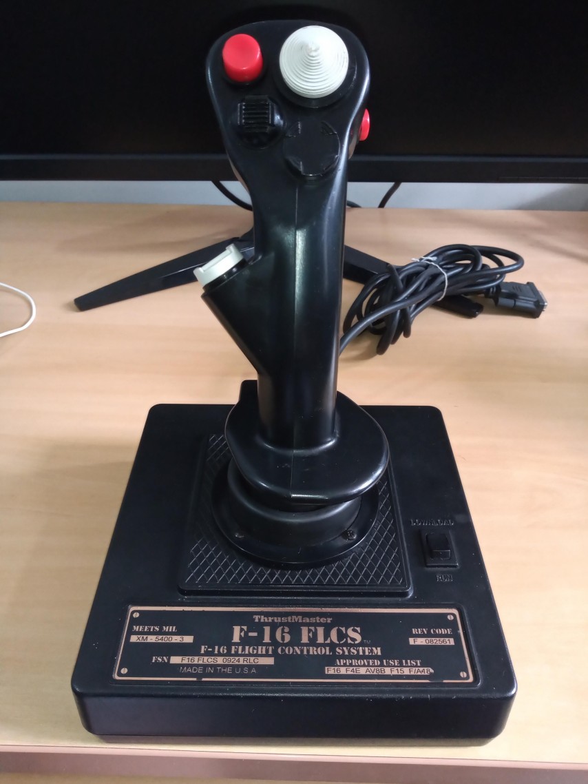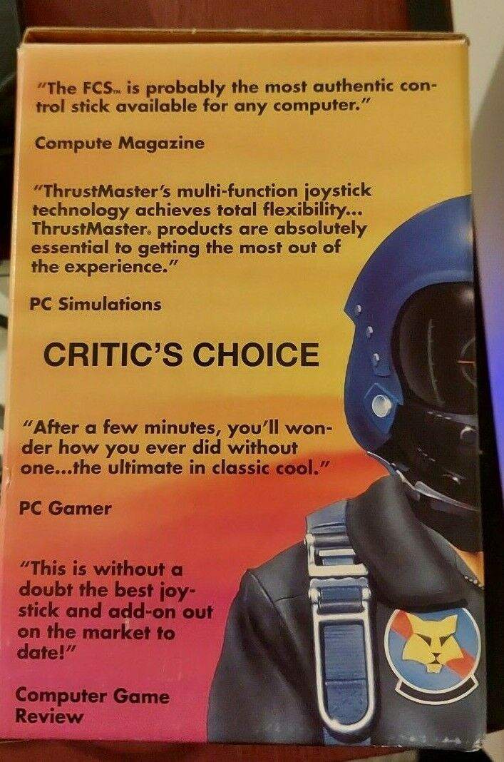 In 1992, ThrustMaster released the Weapons Control System, often abbreviated to WCS. This complemented the Flight Control System (FCS) perfectly, and provided both a throttle control and weapons control for the other hand, all on one device.