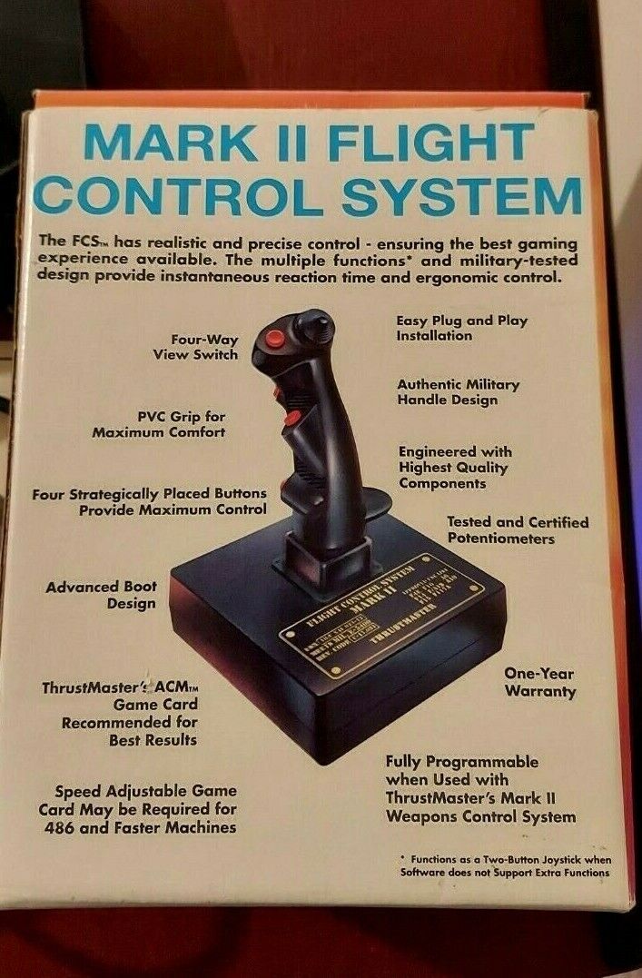 They are probably most famous in the DOS era for their expensive but excellent Weapons Control System (WCS) and Flight Control System (FCS) peripherals.