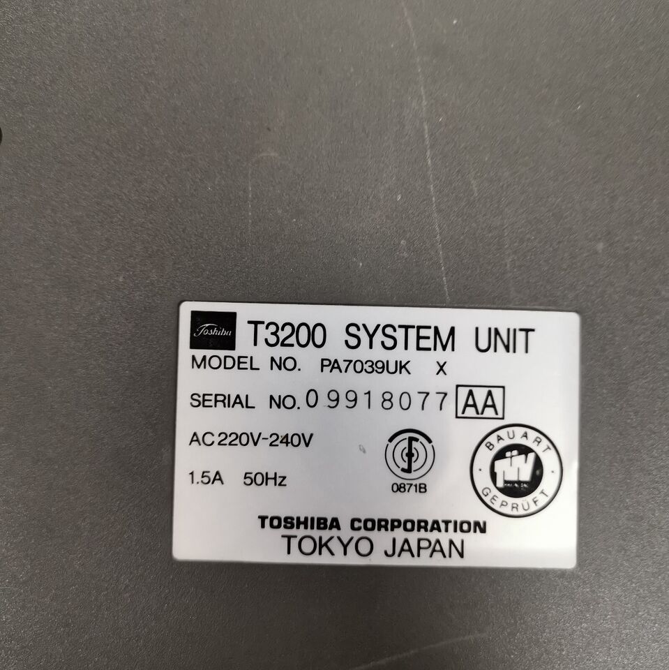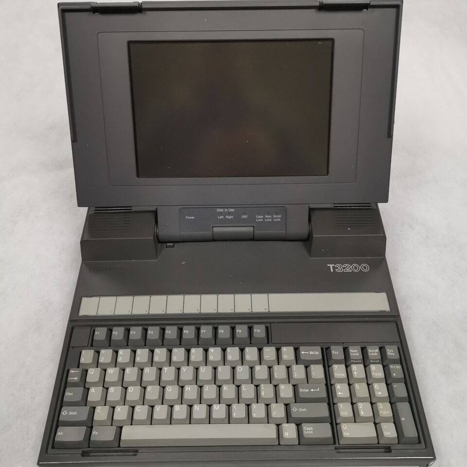 A 386DX-based laptop, the T3200SX was available in both monochrome (T3200SX) and passive colour matrix versions (T3200SXC). Aside from the much nicer colour display, the T3200SXC also got a faster 20 MHz processor over the T3200SX's 16 MHz one. Both weighed around 17 lbs.