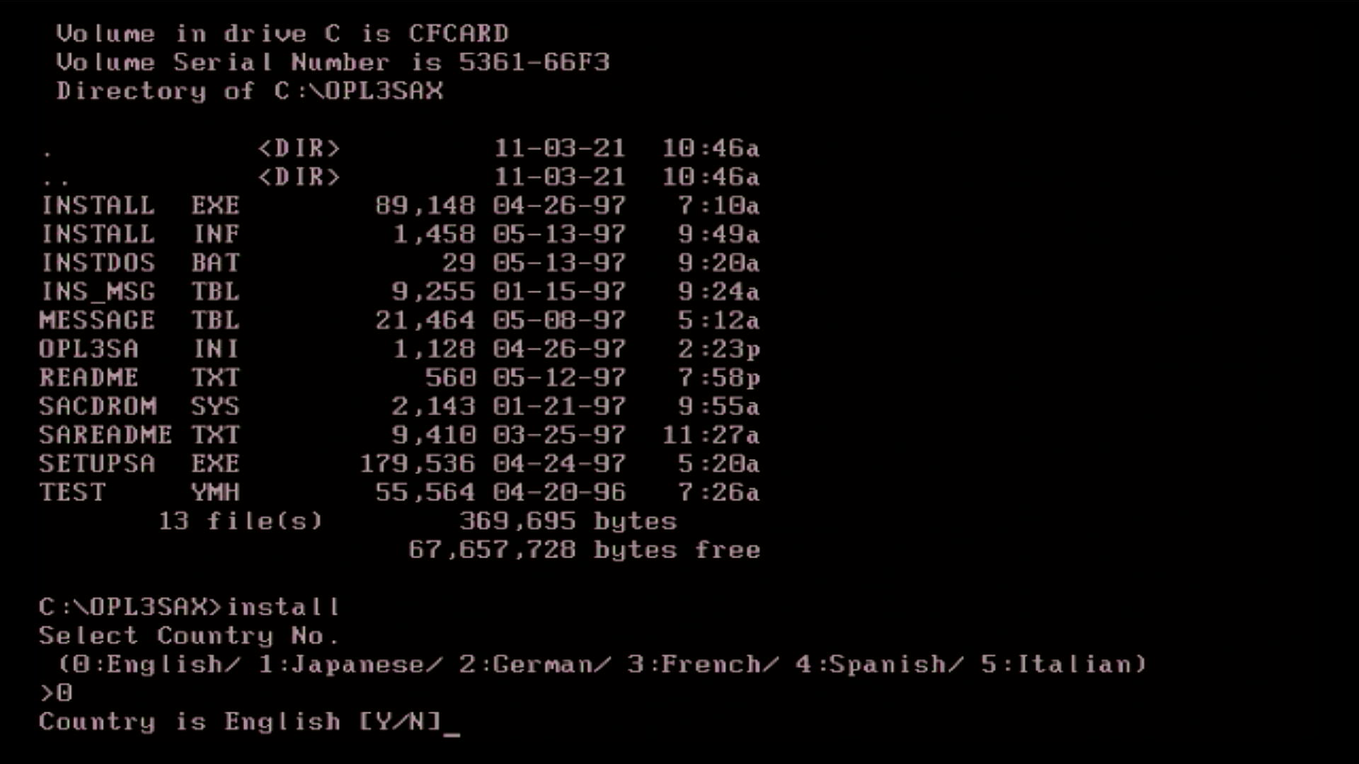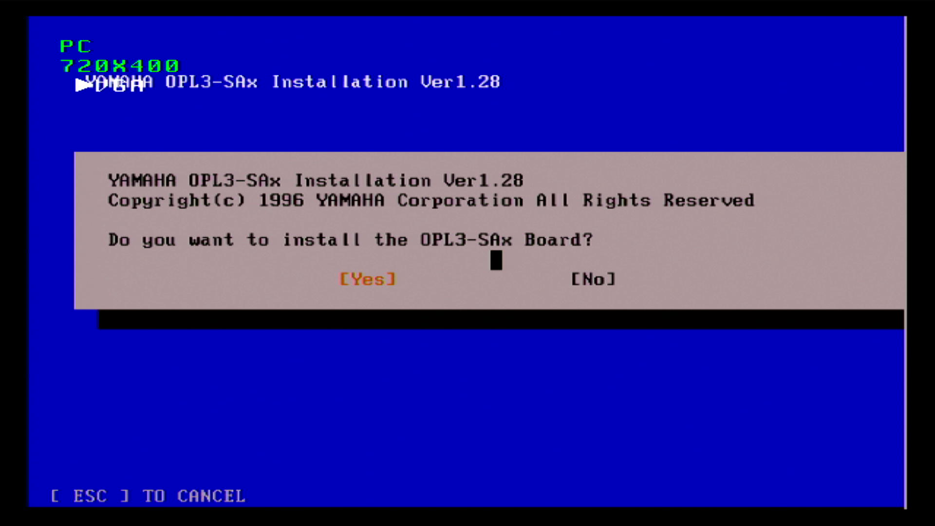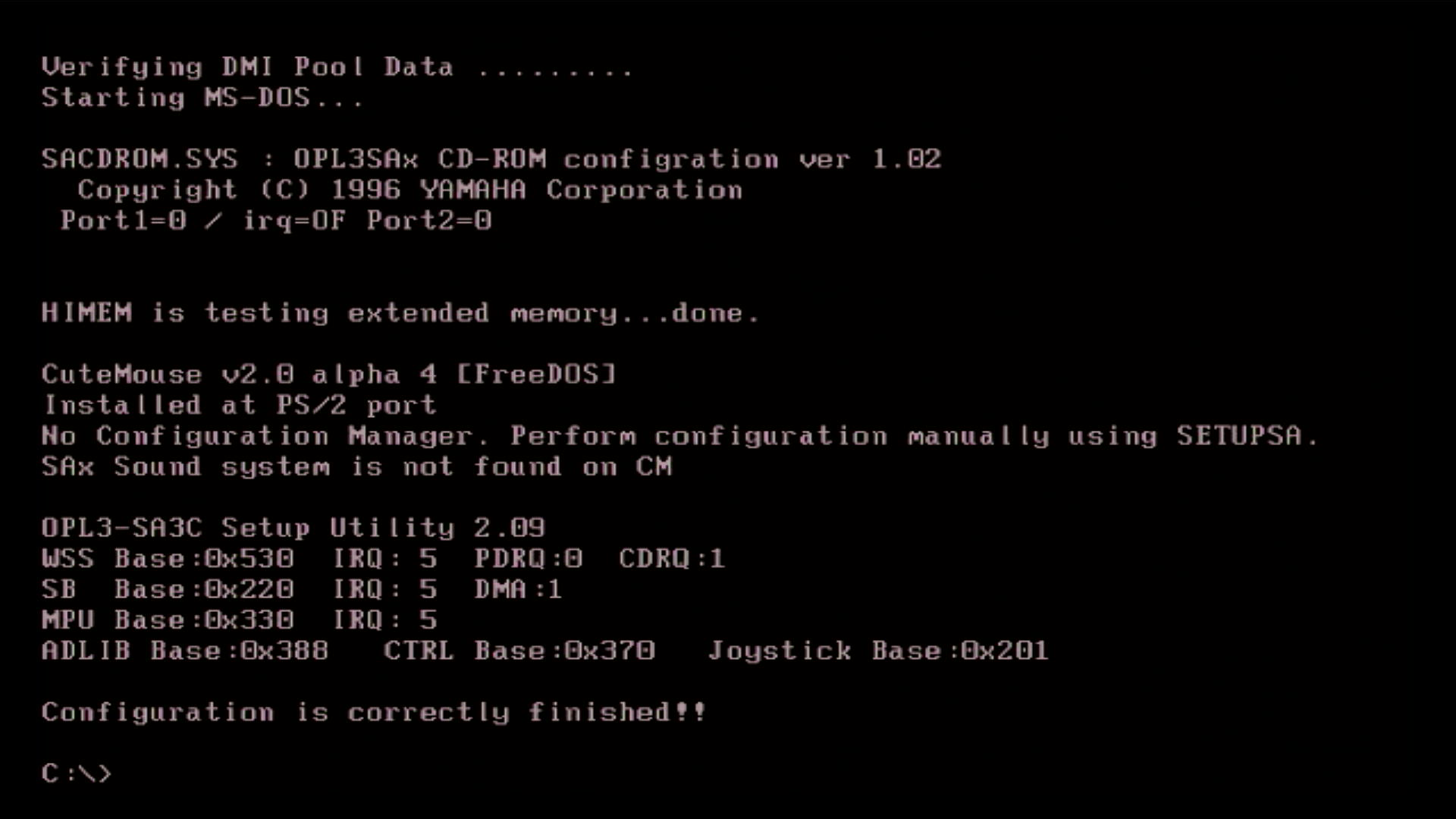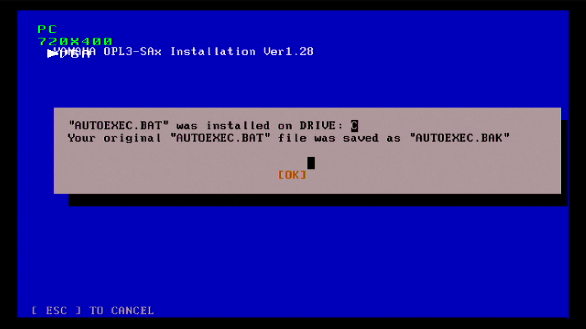 On the Yamaha Audician driver disk is the drivers for DOS, Windows 3.1, 95, and 98. When you install these for Windows, it automatically installs the DOS drivers as well. On the contained CD there is also a separate DOS installer under the DOS folder, where you can run install.exe which will configure your config.sys and autoexec.bat files for you.