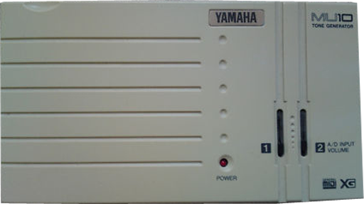 The MU10 was the same as the QS300 minus the front panel editing features, sequencer, and half the elements. It was a GM-compatible sample based synthesizer able to output up to 32-voice multitimbre, featuring up to 2 elements, 65 effects (reverb, chorus, variation), MIDI, 21 drum kits, and 676 presets.