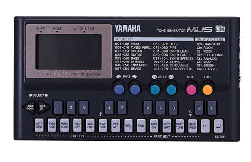 The TG-series was superceded by the MU-series in 1994 with the introduction of the MU5. Based on the TG100, it is a 28-voice, 16-voice multitimbral, sample based (GM compatible) synthesizer, featuring dedicated (AR) amp envelope, an LFO, computer and MIDI interfaces, and 256 presets (64 editable).