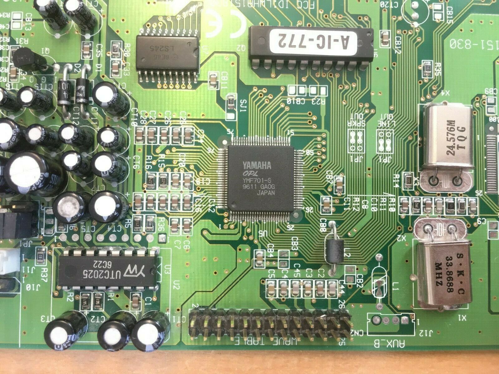 Interestingly though, the card has solder pads for an OPL4 chip, Yamaha YMF-704-S. This is a full wavetable and 1 MB ROM sample set in a single chip.